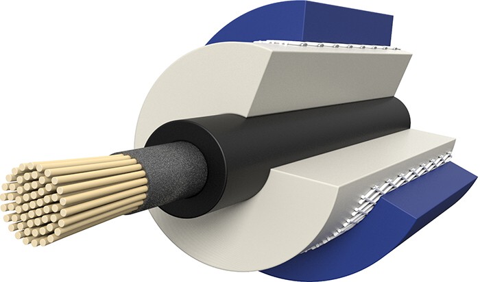 - The carbon-impregneted glass fibre bundle guarantees conductivity and increased tensile strength